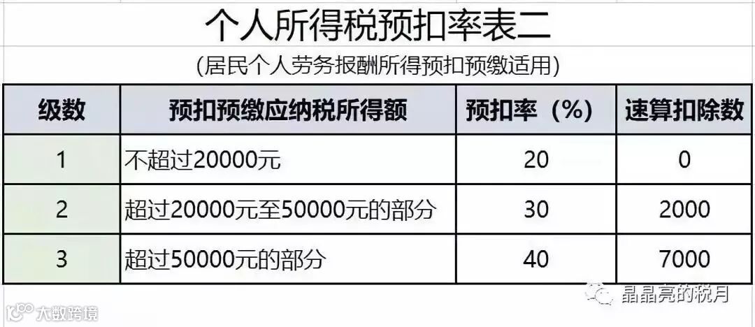 3、个人所得税预扣率有预扣率表一和预扣率表二、以及20%的预扣率。如下图: