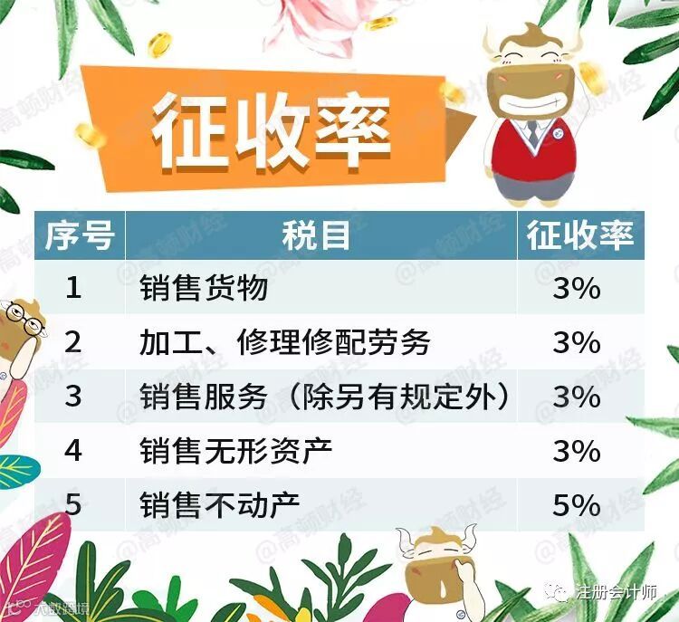 注会菌按改革后的新税率将《增值税税率、征收率、预征率表》进行了调整。