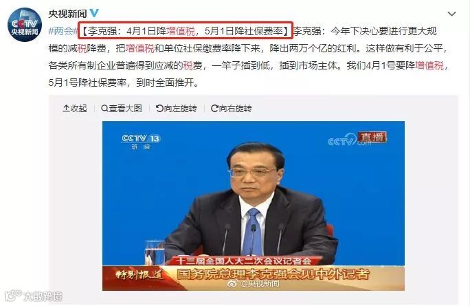 刚刚,总理明确,4月1日减增值税!5月1日降社保费率!