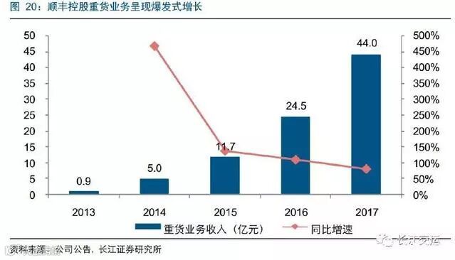 2018年1月,顺丰控股推出20-100kg的重货包裹和100-500kg的小票零担,布局全公斤段零担市场。伴随着大件商品线上渗透率的快速提升,在重货包裹业务的驱动下,不排除顺丰控股重货板块实现加速增长的可能。