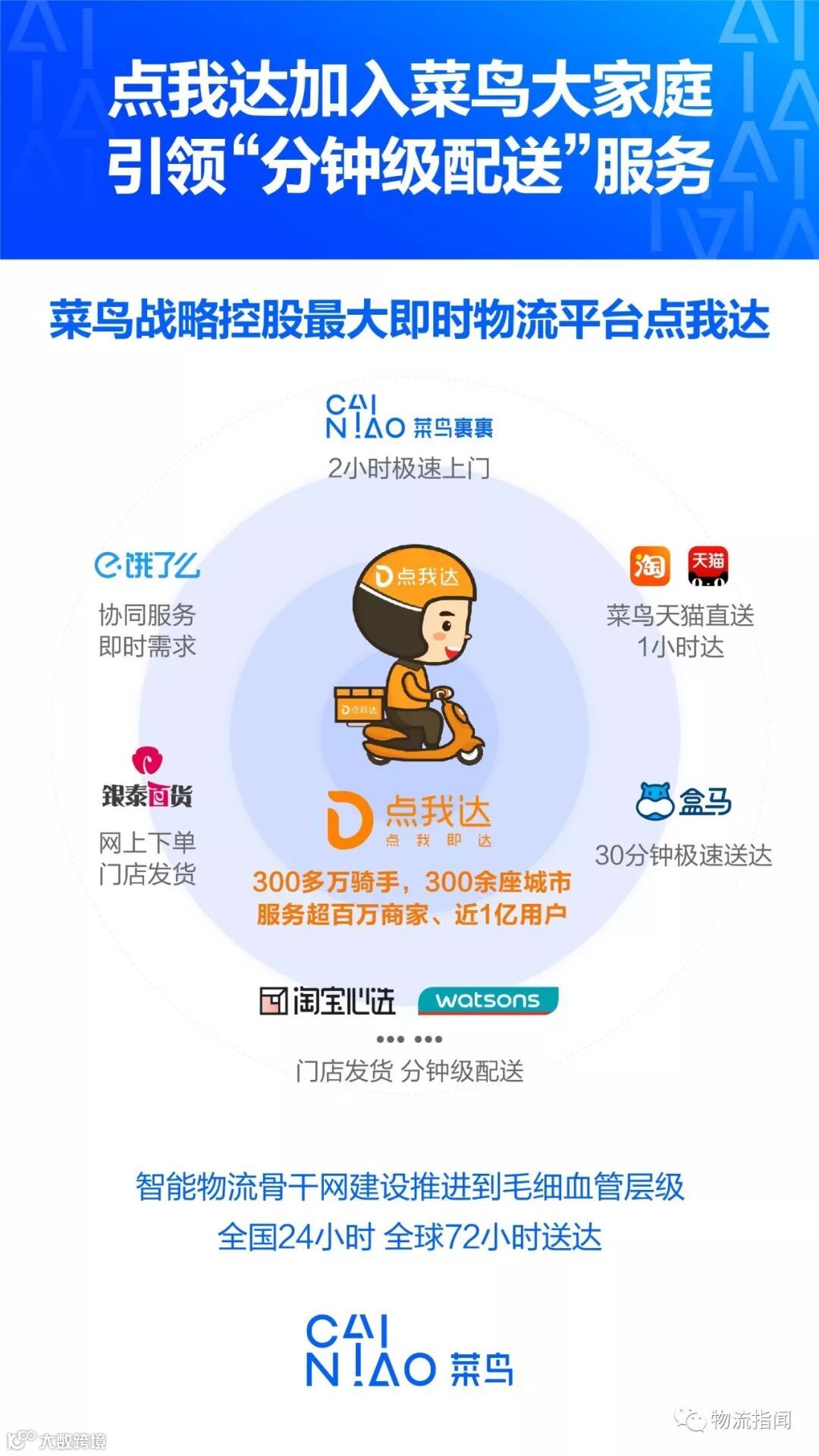 【菜鸟战略控股最大即时物流平台点我达,发力分钟级配送】