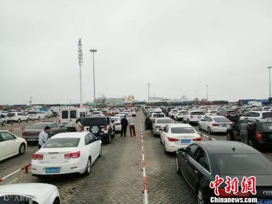 2018年春节期间,一场多年罕见的持续大雾让琼州海峡持续封航,导致大量车辆和旅客滞留,图为大量车辆在海口新海港等待上船。尹海明摄