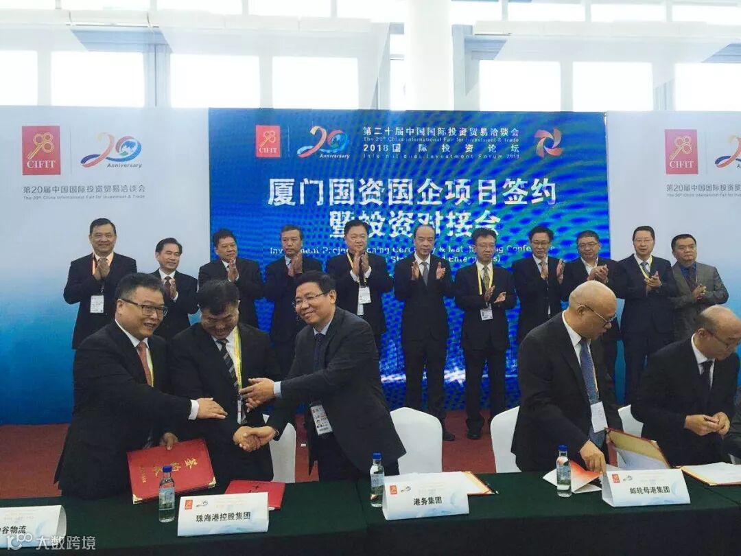9月9日上午,第二十届中国国际投资贸易洽谈会厦门国资国企项目签约暨投资对接会在厦门国际会议展览中心一号会议室隆重举行,作为厦门国资国企合作重点项目:上海中谷物流股份与厦门港务集团、珠海港控股集团三方签订“两港一航”“厦门-珠海”精品航线战略合作协议,将经济特区厦门和珠海再次串联互通、紧密相融。