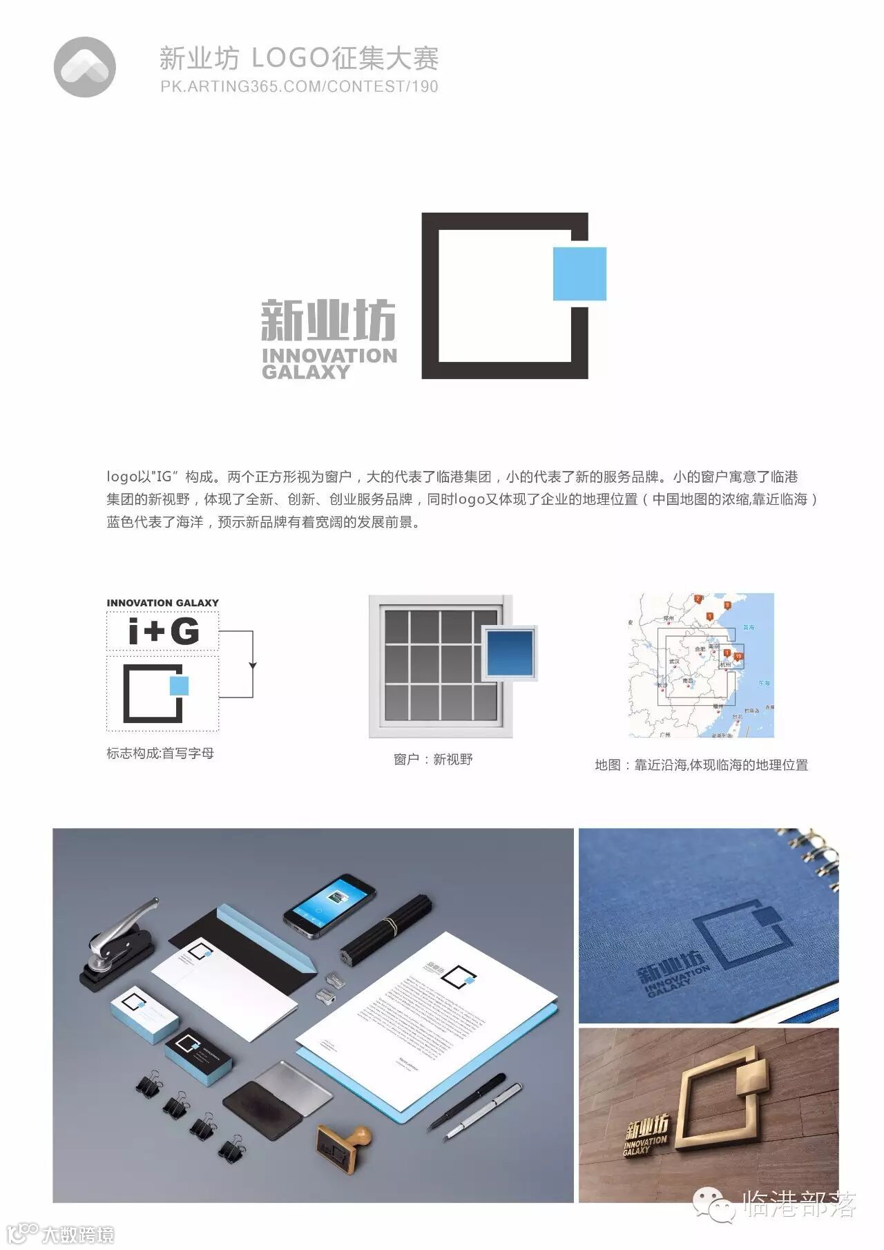 设计说明:logo以“IG”构成。两个正方形视为窗户,大的代表了临港集团,小的代表了新的服务品牌。小的窗户寓意了临港集团的新视野,体现了全新、创新、创业服务品牌,同时logo又体现了企业的地理位置(中国地图的浓缩,靠近临海)