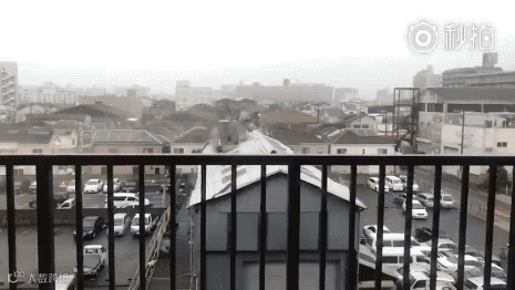 当地时间下午2点03分,大阪出现47.4米/秒的15级瞬时大风,这个风速为1961年之后,57年来大阪最强风力,排在观测史上的第三强!风雨交加简直就像世界末日来临一样。