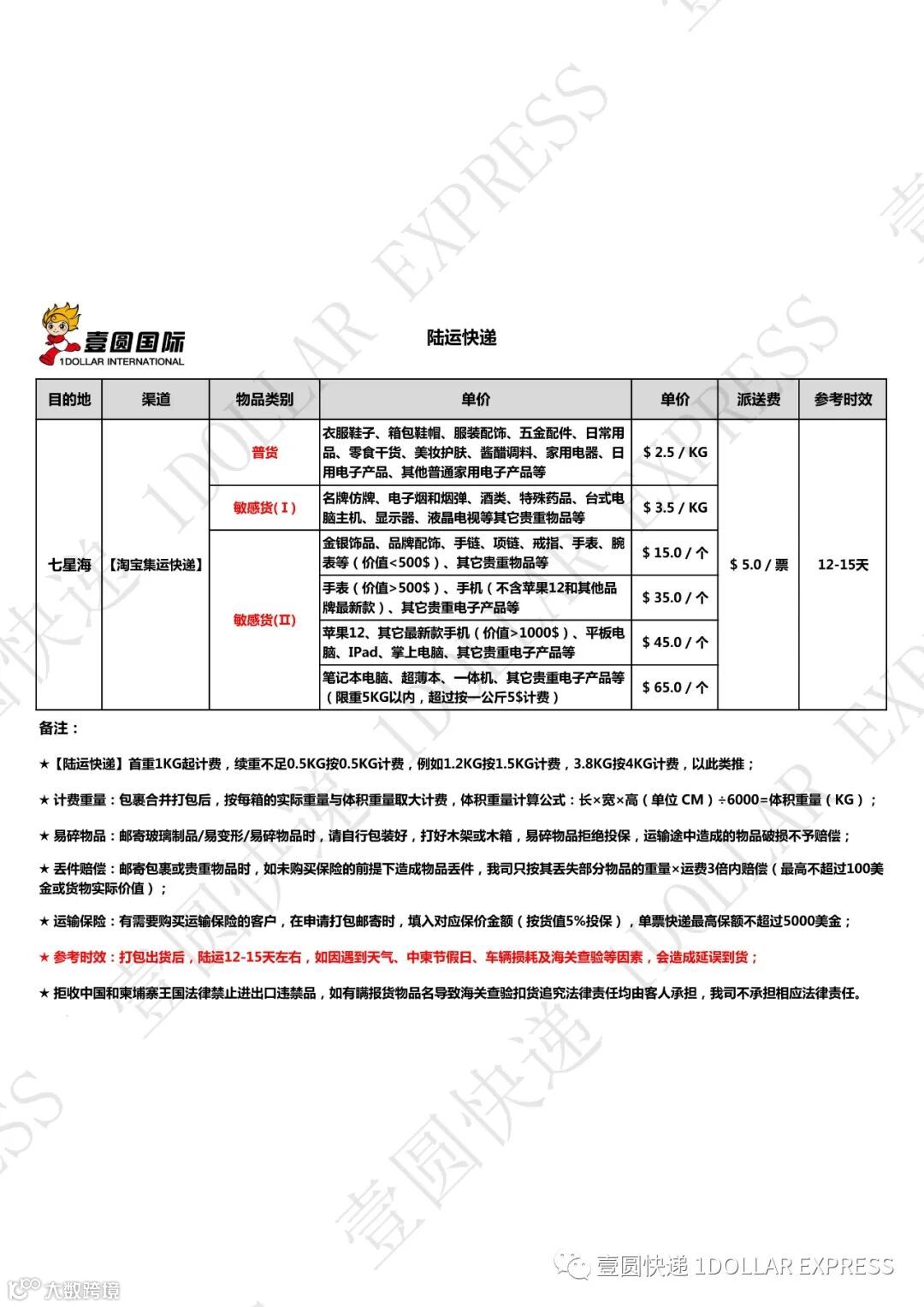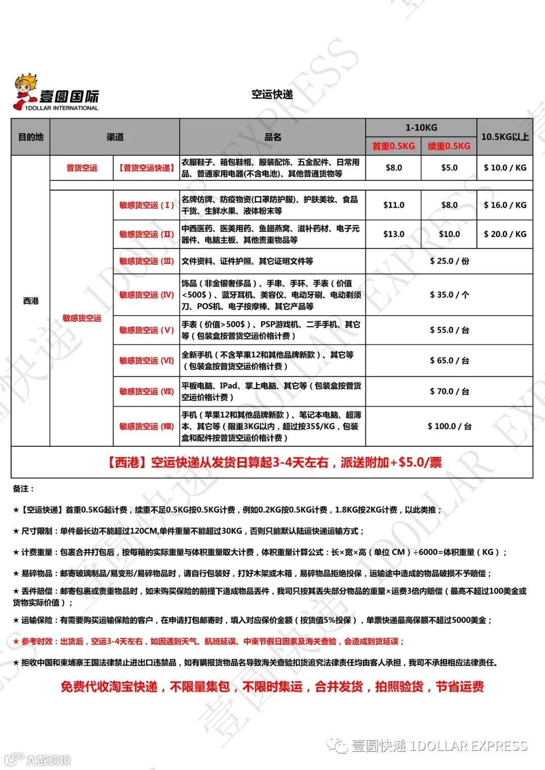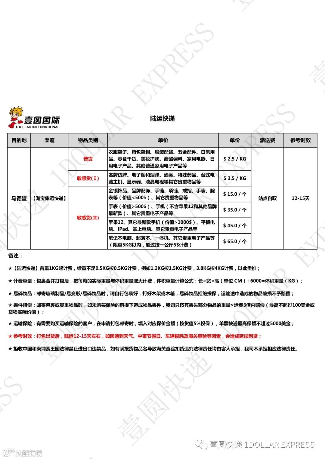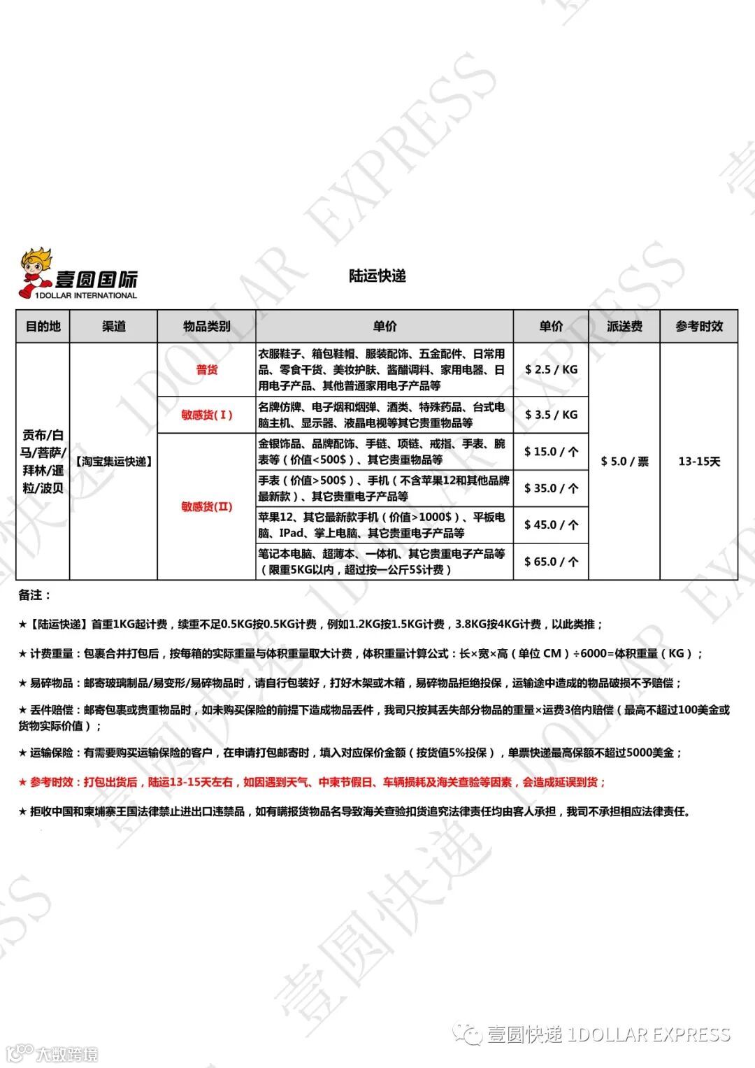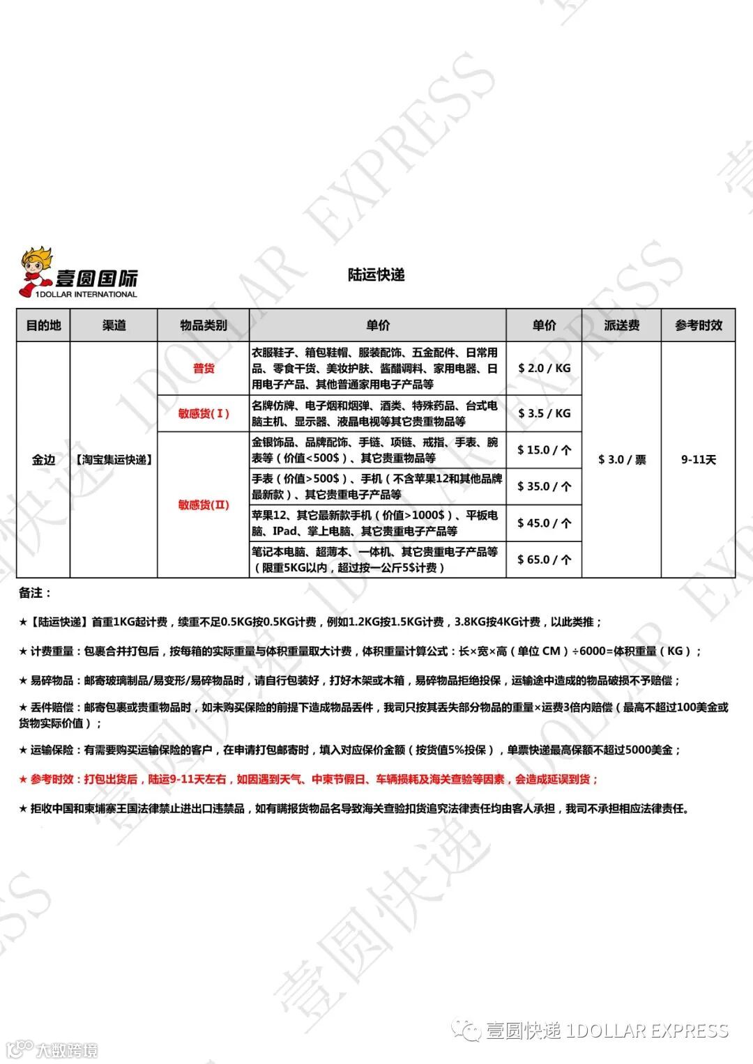 中国寄柬埔寨(各个省份/城市)的中柬集运(陆运/空运)快递费用表