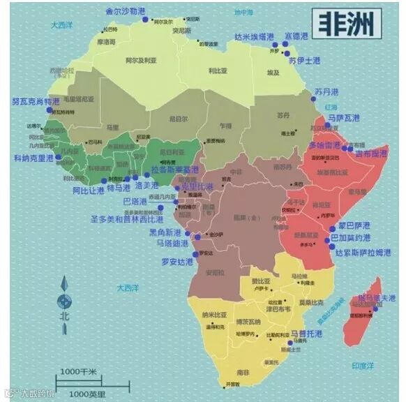 非洲大陆沿岸国家33个,中国建设港口的有20个国家。
