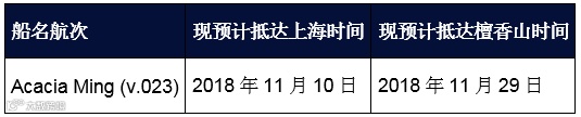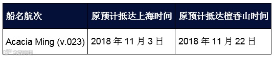 因此,Acacia Ming (v.023) 航次将顺延一周: