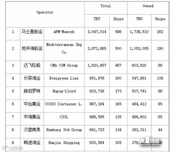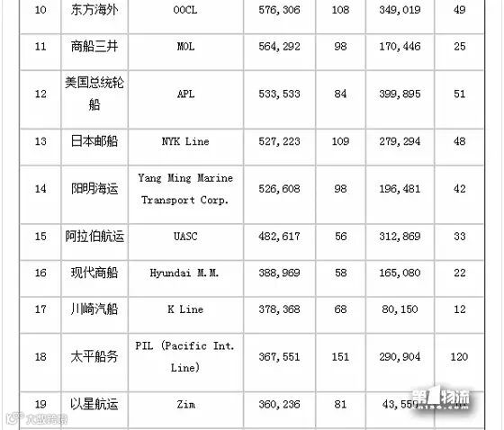 最新20大班轮公司运力排名数据出炉,结果如下:
