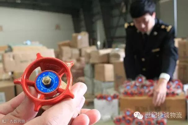 图为:海关关员清点涉嫌侵权的阀门 顾哲玮/摄