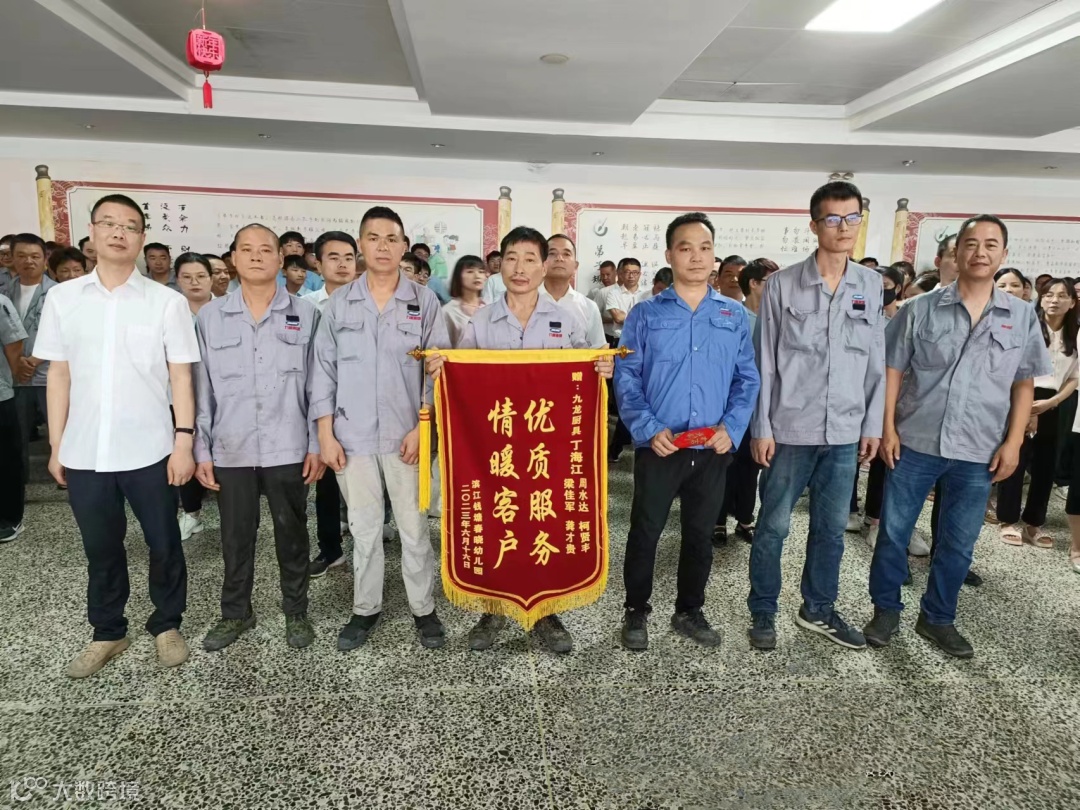 原来在6月16日,工程部安装六组(丁海江、周水达、柯贤丰、梁佳军)和灶具组龚才贵去钱塘春晓幼儿园江南分园换灶。在现场积极配合拆旧,把旧灶放到幼儿园老师指定的地点,将新灶按标准装好,并对使用人员进行了手把手的培训。他们负责任的工作态度得到了园领导及老师的高度认可。为此,丁老师、钟老师特意打电话给公司,赞扬工作人员工作效率高、服务到位、态度亲和。园方为表达感谢之意,还特意送来了一面锦旗。
