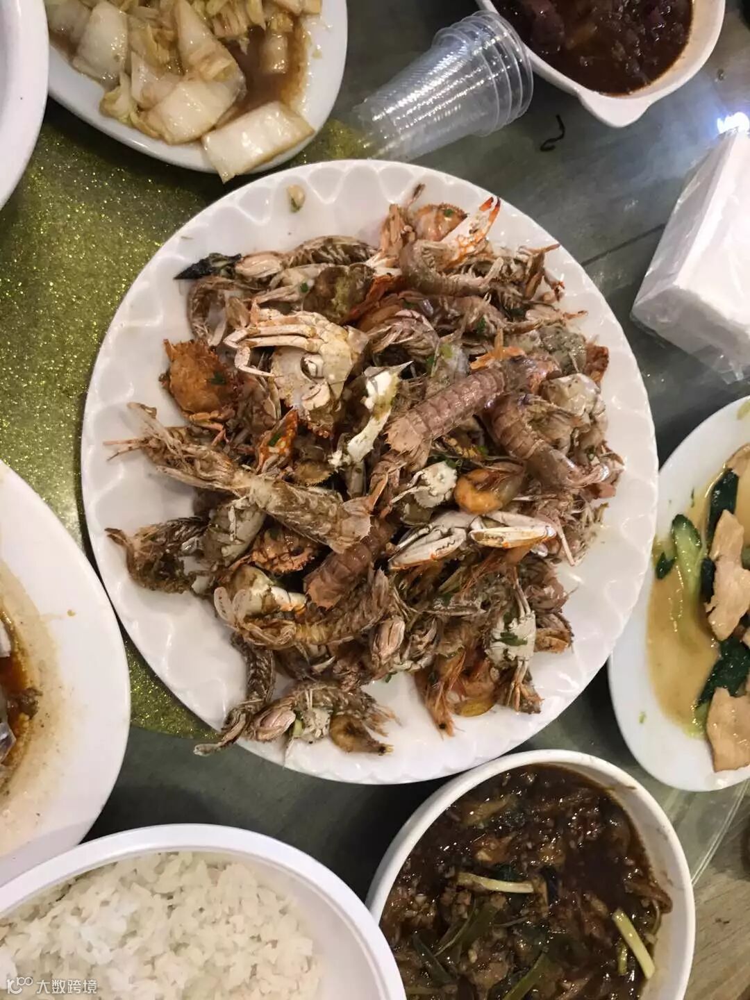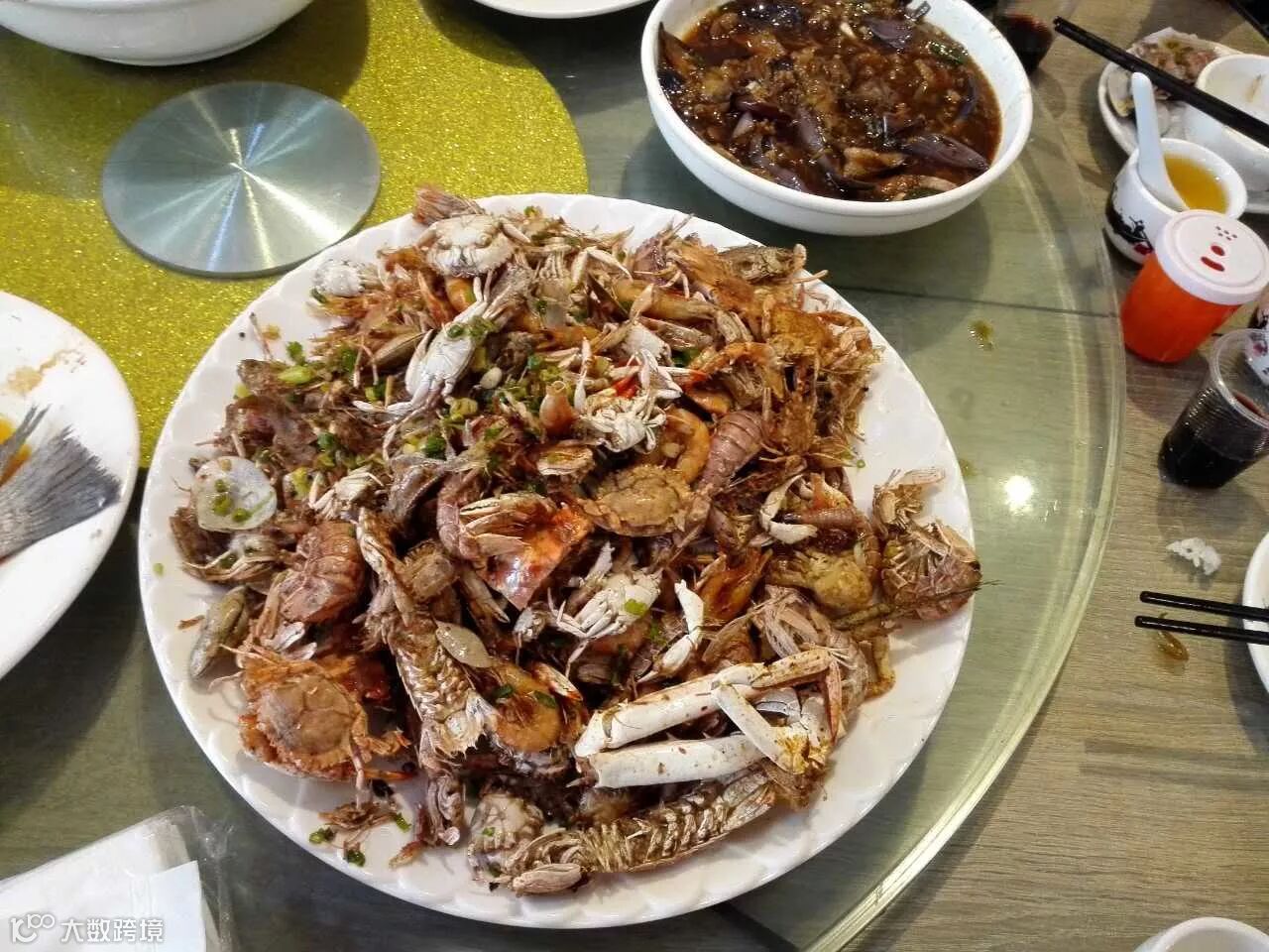 午餐时间到了,分享着收获的喜悦,厨房加工的椒盐味的皮皮虾(濑尿虾)、螃蟹、海虾,真的是太美味了!