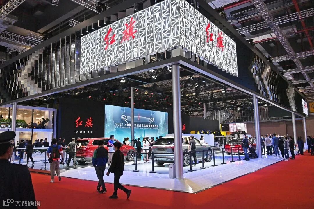 在2021上海车展上,红旗展台秉承“创旗迹·新征程”的参展主题,打造旗舰豪华、新能源趋势、尊享定制、致敬红色力量、首创技术等5大展品主题、12款核心整车产品及5项技术展品。