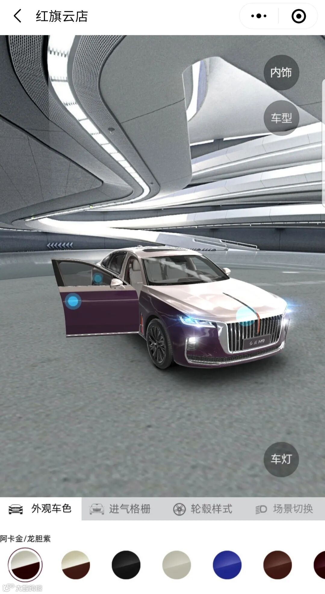 红旗品牌线上云车展是集品牌展示与车型互动于一体的沉浸式体验平台,通过简洁设计、高精度3D建模及趣味化互动环节,满足用户足不出户即可了解红旗产品的需求,让用户更全面地感知红旗品牌、红旗汽车及红旗用车生活。