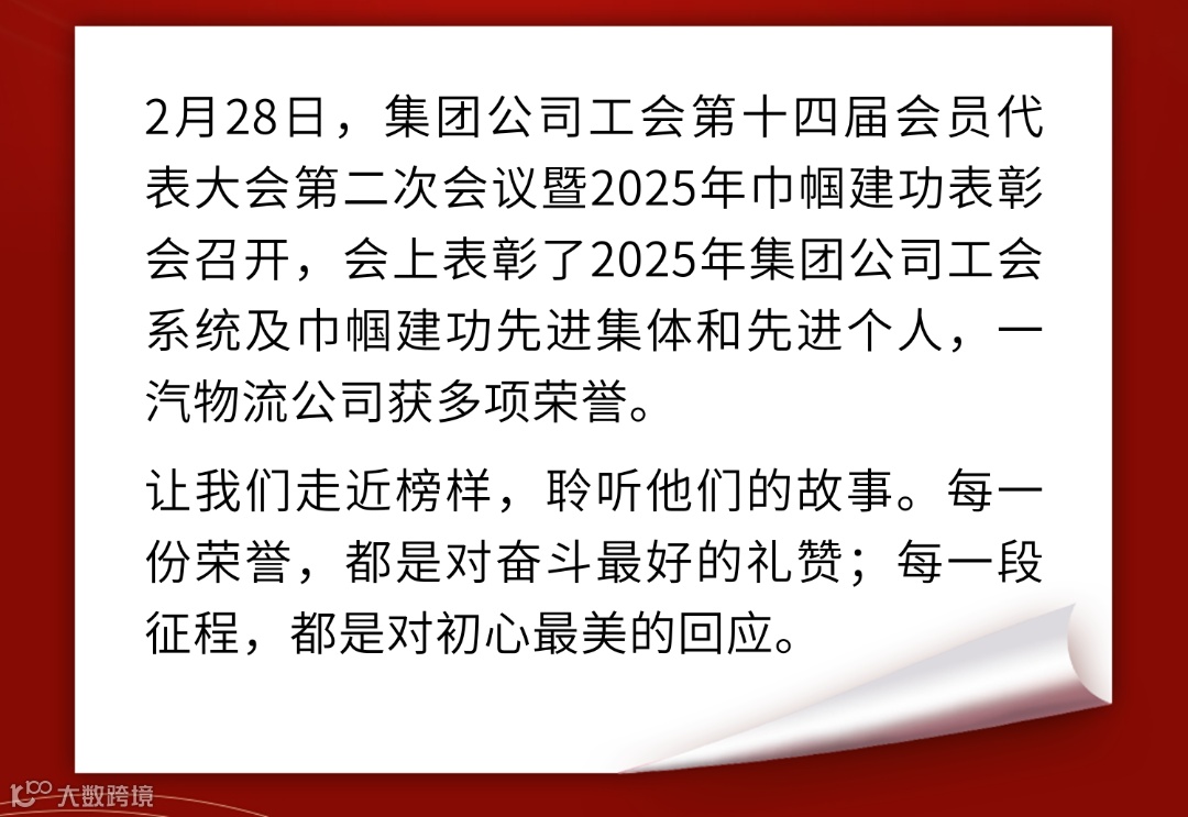 匠心耕耘,喜撷硕果!一汽物流喜获中国一汽工会系统评比和巾帼建功评选多项荣誉