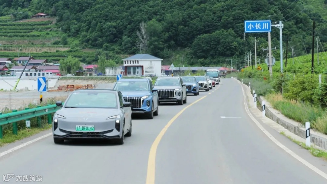 红旗品牌南线车队继续前行,由红旗EH7、红旗HS7 PHEV、红旗HS5、红旗HS3、红旗H6组成的车队开启第二段征程,奔赴临江市。