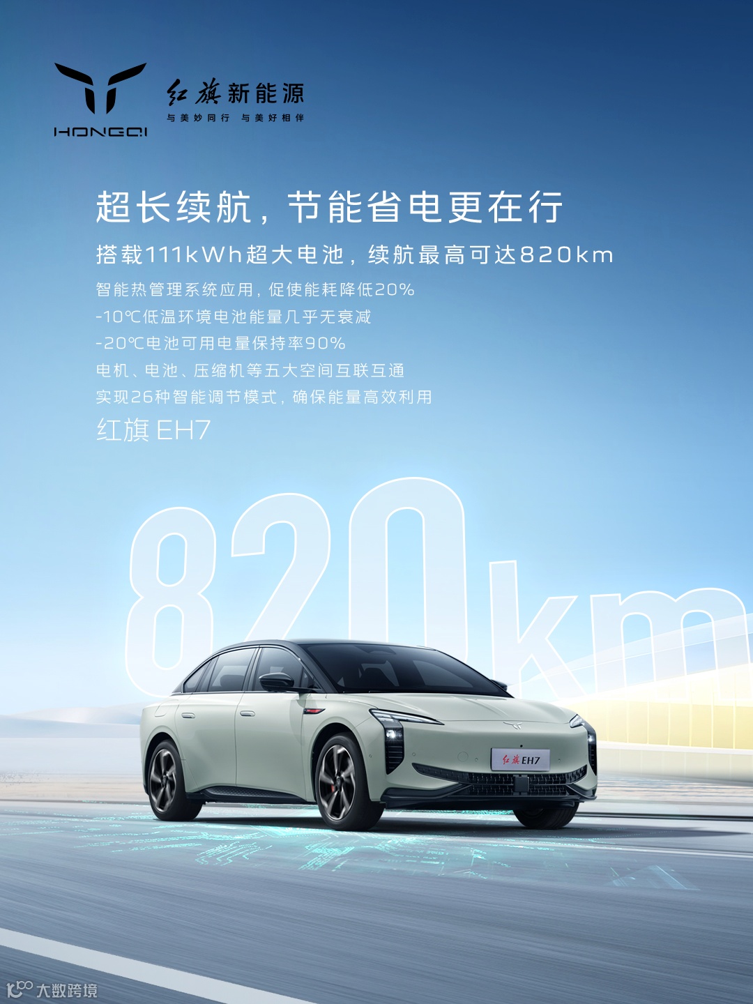 一场长途旅行,怎能缺少出色的续航作为后盾呢?红旗EH7面对冬季续航打折的担忧,采用首创的低温电芯技术,冬季续航保持率高达70%,让工况续航820公里车型,在冬季依旧能够保持500公里以上的续航里程,无需为续航而忧虑。眼望着电量显示,你的旅途才刚刚开始。