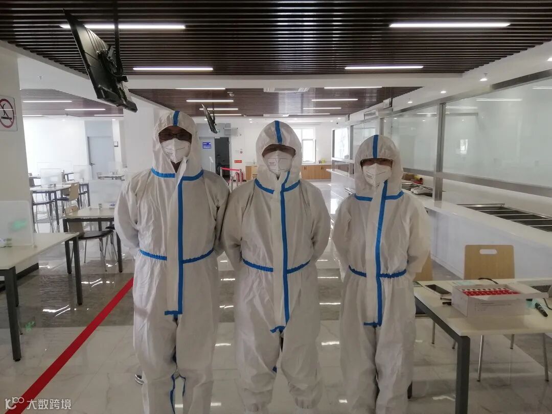 在工作中,他们认真核对“一人一码”,确保检测不漏一人,科学严谨。扫码登记过程中,需要直接接触过往人员,这也意味着有更大的感染风险,一轮检测下来,卸下防护口罩后脸上是深深的印痕,脱下防护服浑身上下已经湿透。