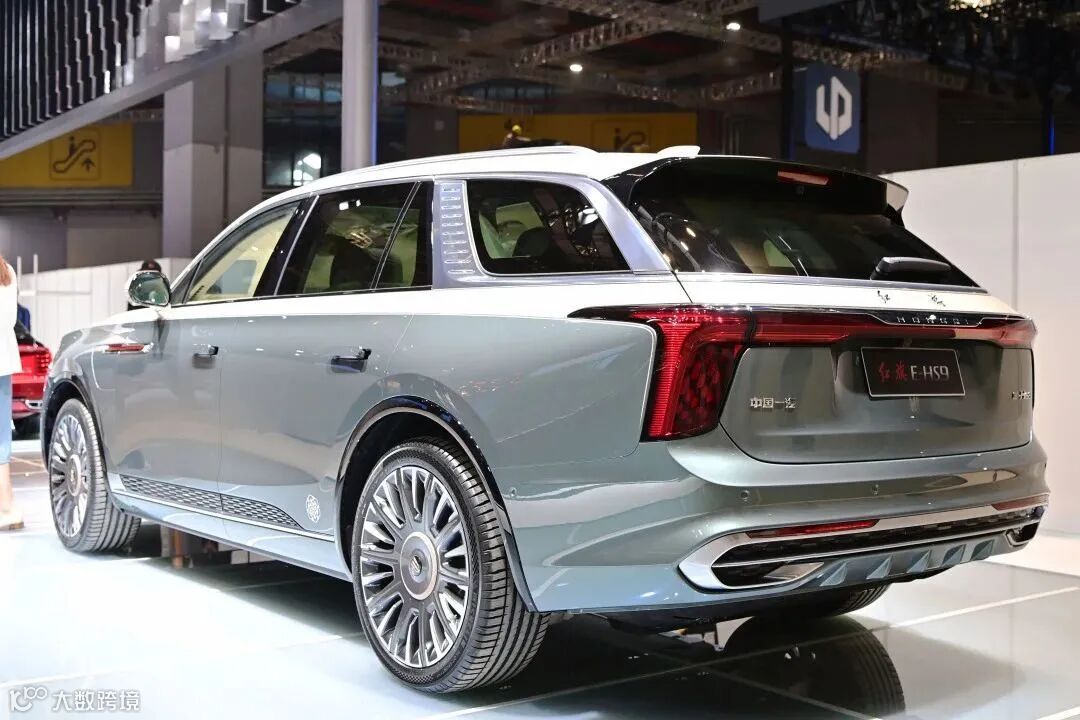 红旗E-HS9敦煌艺术版,采用沙金色与石青绿的全新双色车身,体现敦煌特有色彩,并全新设计了敦煌主题轮辋造型。