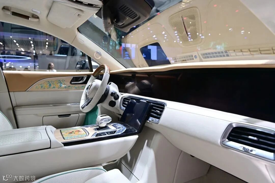 2021上海车展现场,全新推出的红旗E-HS9敦煌艺术版车型闪耀亮相。该车采用敦煌文化元素主题颜色车身,传统工艺与现代工业产品相结合,展现红旗×敦煌的文化魅力。