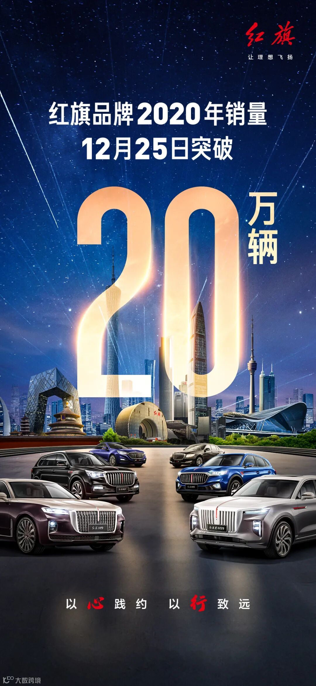 为者常成,行者常至。时光的年轮即将抵达2021,我们又一次站在新的历史起点。作为“十四五”的开局之年,红旗品牌全产业链高质量创新发展将再上新台阶,为美妙中国国人出行生活、强大中国汽车产业、国家经济安全、国民经济建设作出新的更大贡献。今年好,明年更好!