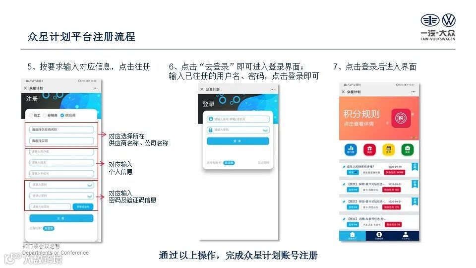 轻松搞定注册之后,扫码绑定账号即可接受任务信息,每天利用碎片化的时间,分享、转发或者原创一汽-大众的故事,即可领取积分,登上流量贡献排行榜,夺取荣誉称号!一汽-大众也给大家准备了丰厚的奖品,使用积分就可以兑换哦!