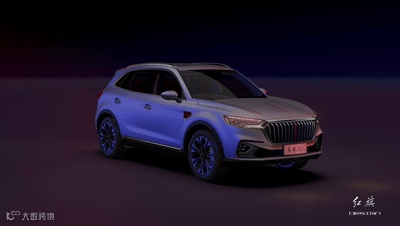 红旗HS5的大灯组造型是十分犀利的见棱见角的设计,在不点亮的时候就足够霸气了。点亮后的大灯效果,上侧灯眉位置一条横向LED灯带和下侧三组L造型的矩阵灯带组成的日行灯有着非常强的视觉冲击力。