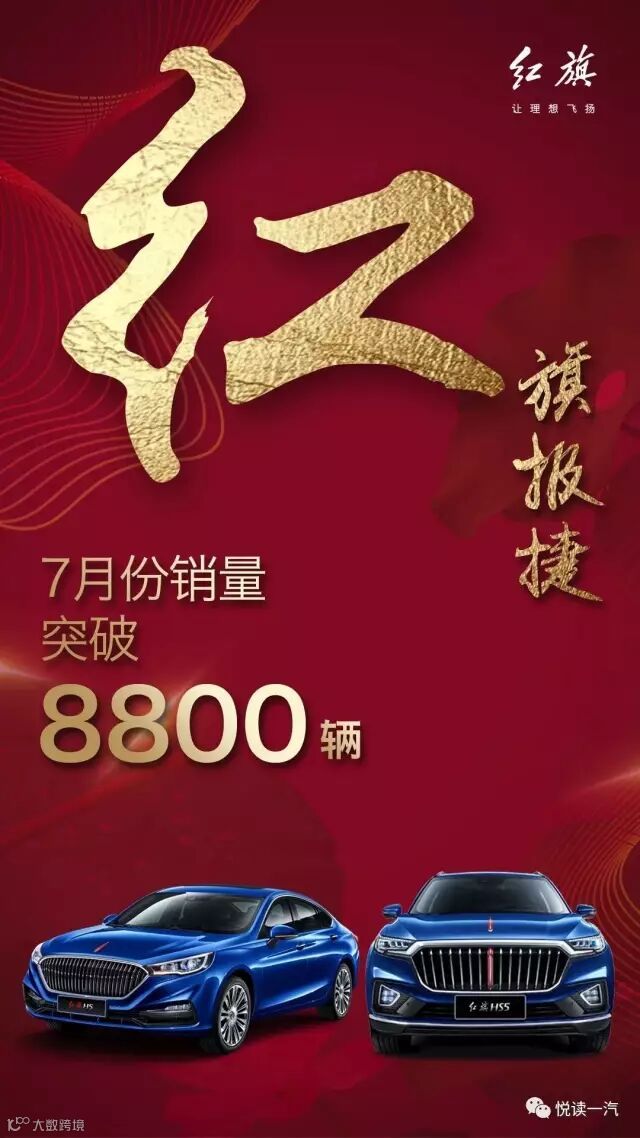 8800辆,这是红旗7月份销量数据,不仅代表着数据的刷新,也体现了国人对红旗的认可,对红旗的支持,以及对红旗的信心。