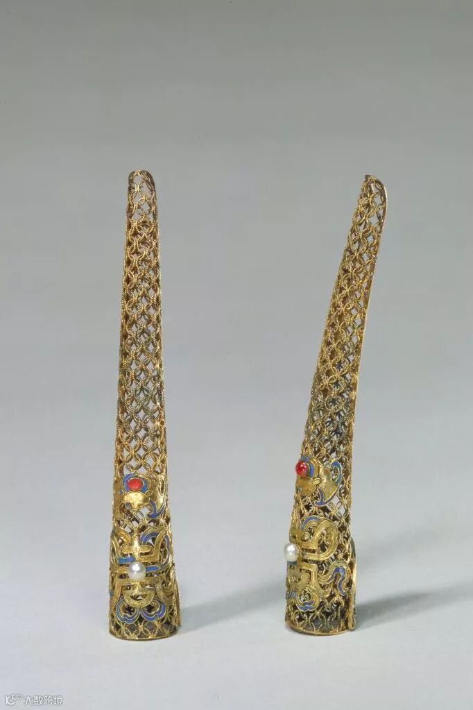 “销薄春冰,碾轻寒玉,渐长渐弯”,后宫娘娘在护甲上也颇花心思。