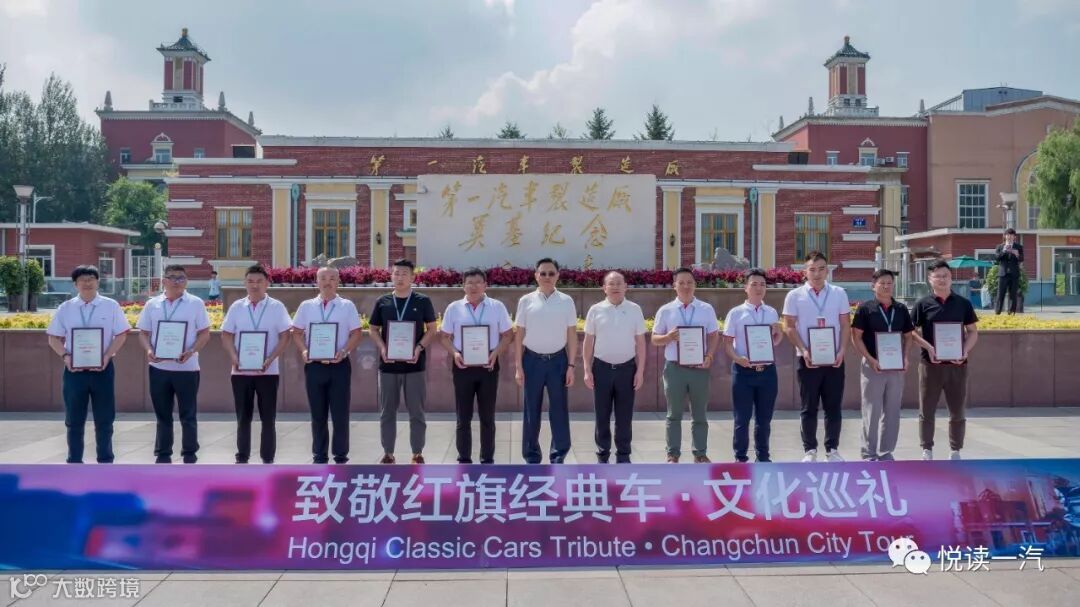 在1号门广场前,徐留平、奚国华向红旗车主颁发了“红旗文化大使荣誉称号”的证书并合影留念。