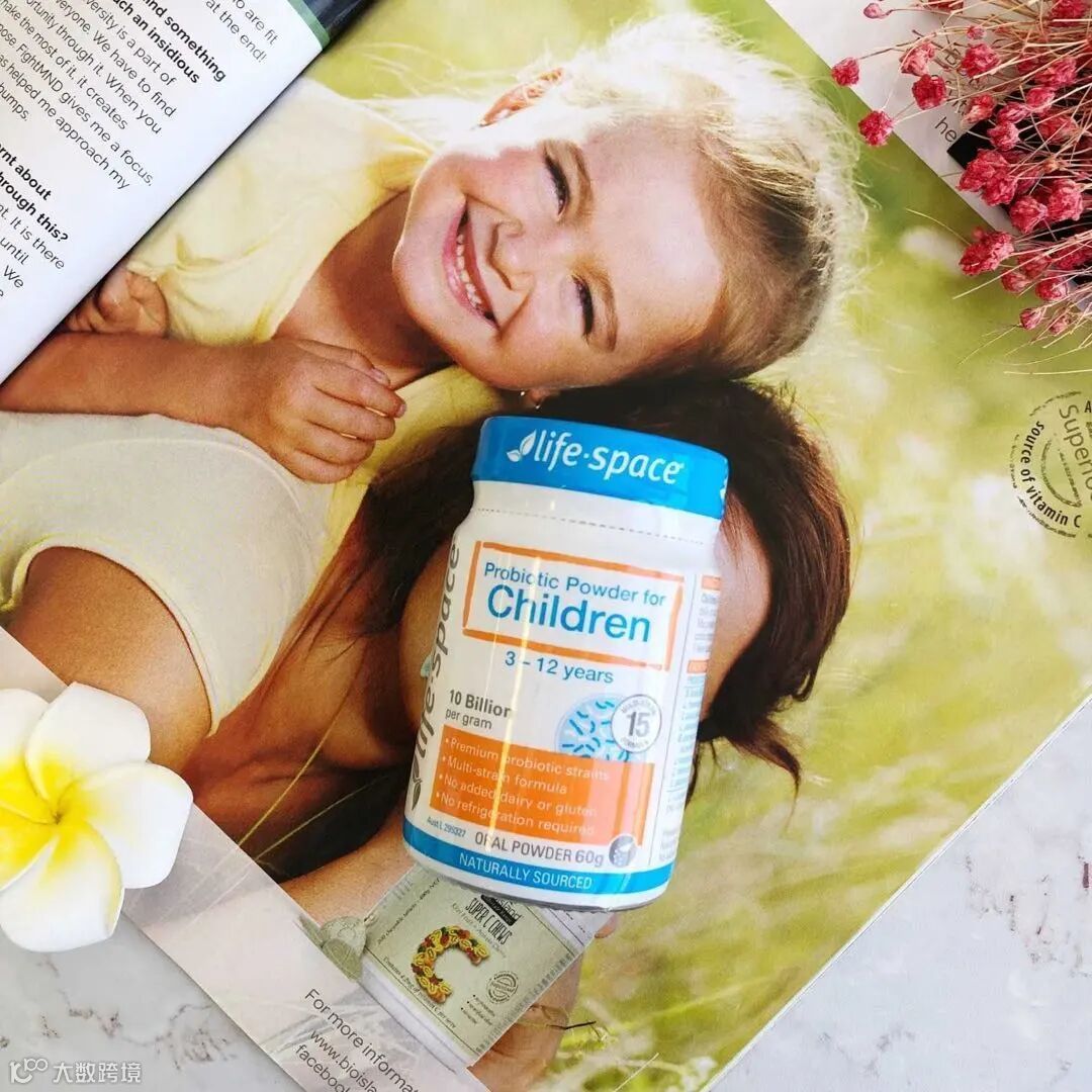 澳洲Life Space children 儿童益生菌60g 适合3~12岁儿童!粉末可以调入奶粉当中, 适合患有湿疹过敏性体质,肠胃不好,容易腹泻、感冒的孩子增加被抗生素杀死的有益细菌数量提高免疫力澳洲最好的益生菌, 每天1小勺,呵护宝贝肠胃健康,强健体质!