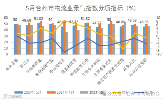 平均库存量指数为51.32%,同比上升4.44个百分点,环比下降3.44个百分点,处于荣枯线以上扩张区间运行;库存周转次数指数为50%,同比上升1.56个百分点,环比下降1.19个百分点,处于荣枯线临界点运行,上下游需求整体库存回落,物流库存周转效率趋缓。