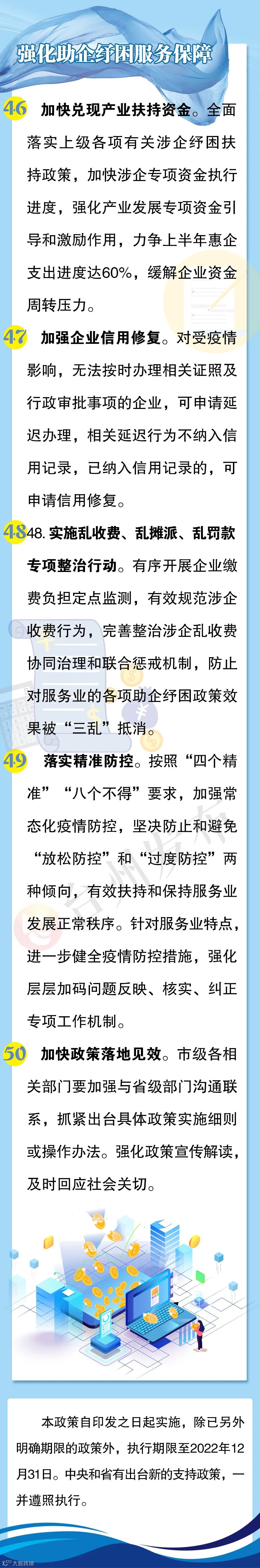 《50条》主要针对当前我市服务业普遍面临的经营成本上升、人工租金上涨、消费市场萎缩、防疫开支增加、融资难融资贵等突出问题,提出3方面共50条纾困帮扶政策,其中普惠性纾困帮扶政策23条,分行业领域纾困帮扶政策22条,助企纾困服务保障措施5条。