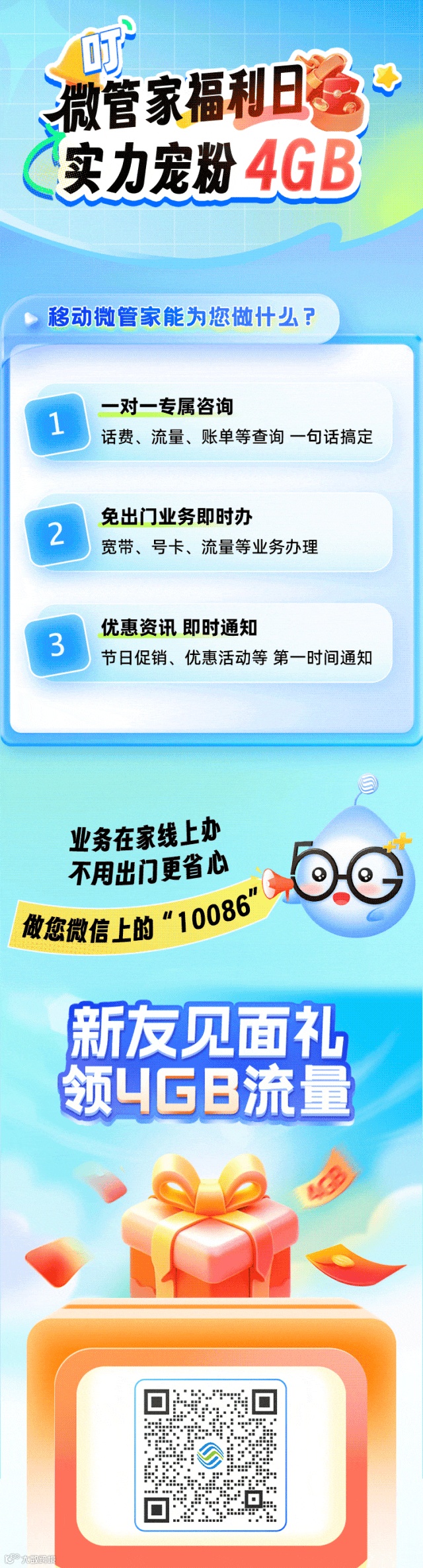 河北移动官方公众号,查流量、查话费、查积分,各种优惠活动停不下来,现在还可以线上选号,要记得关注哦! 经营许可证编号:A1.A2-20090001、A2.B1.B2-20100001