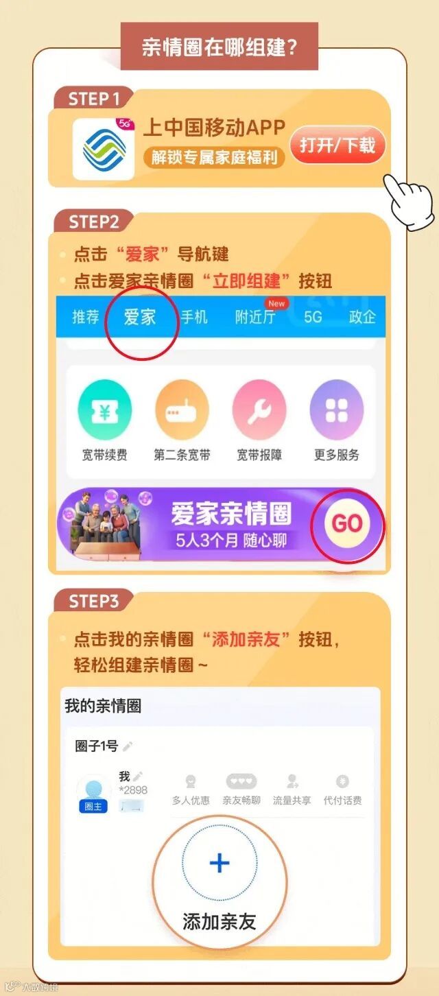 立即免费组建“移动亲情圈”
