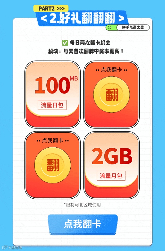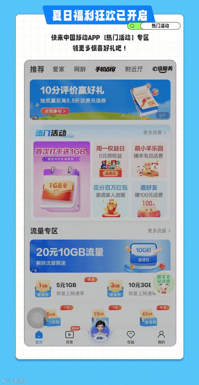 河北移动官方公众号,查流量、查话费、查积分,各种优惠活动停不下来,现在还可以线上选号,要记得关注哦! 经营许可证编号:A1.A2-20090001、A2.B1.B2-20100001