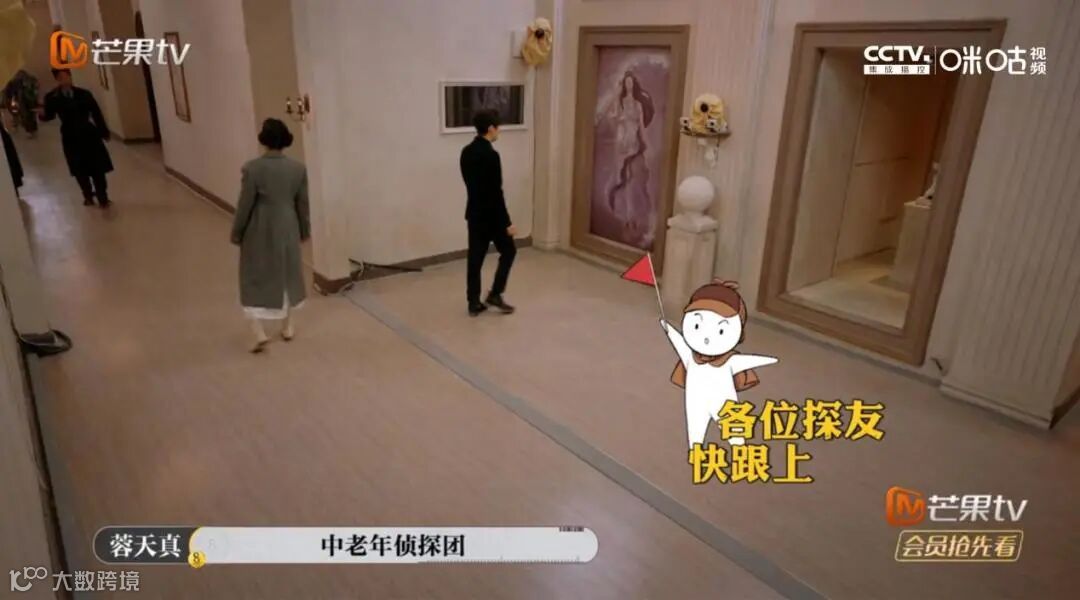 为弄清楚电梯壁龛的结构,何炅带着大家在公馆上上下下来回搜证,累到气喘吁吁的杨蓉和王鸥,自嘲是“中老年侦探团”。