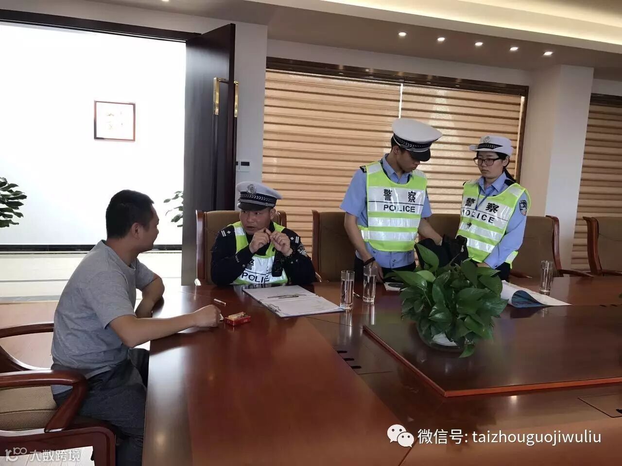 图1、旭隆集团副总经理-陈姣先生接见交警中队工作人员