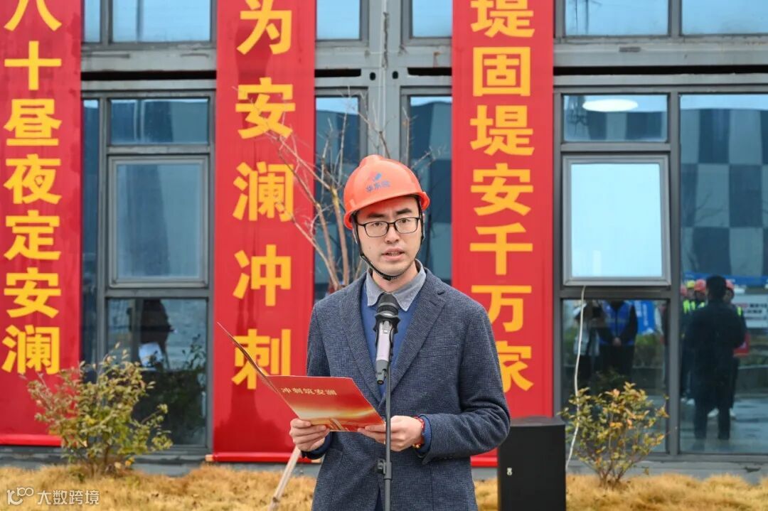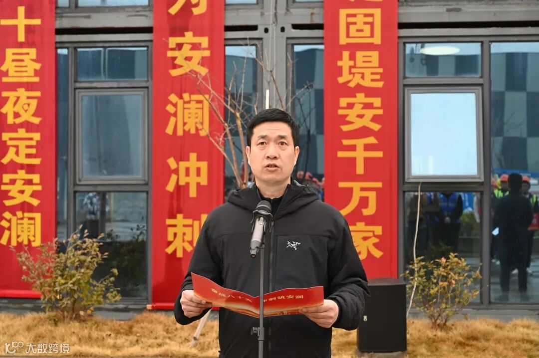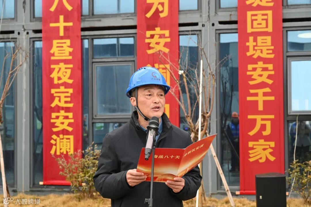集团副董事长、总经理胡定波作动员讲话,要求参建各方要雷霆出击,抢回工期。以“六干”精神为指引,锚定八十天总目标,倒排工期、细化节点,挂图作战保进度。要铁腕推进,使命必达。各参建单位要切实肩负起责任,扎根施工现场,全程把控项目施工进度、质量和安全。以“务实干”建立起高效的工作落实机制,要安全至上,保驾护航。在抢进度的同时,要加强施工现场的安全管理,加大安全隐患排查整改力度,发现隐患立即整改。护航“全速攻坚”。