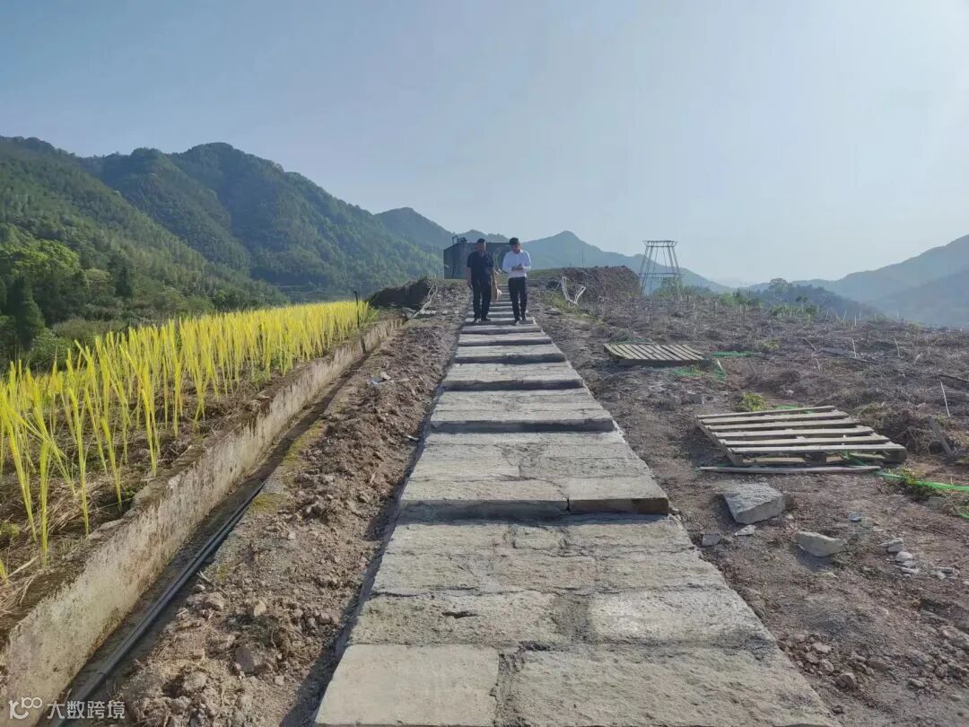黄岩区屿头乡玫瑰园内提升改造工程正在完善园内道路。