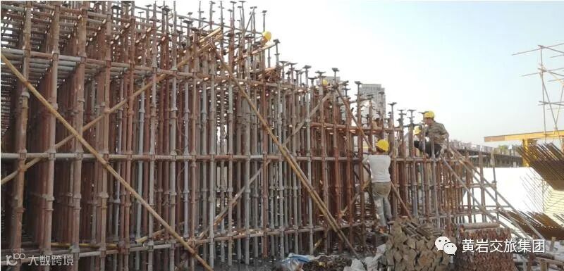 在黄岩永宁公园中段,横跨永宁江的飞燕式拱桥提前完成了拱座的浇筑。S325复线黄岩马鞍山至后洋段公路工程中的三座跨江大桥,在工人们的努力下,一座已合龙,一座提前完成拱座混凝土施工,一座正在架设T梁。