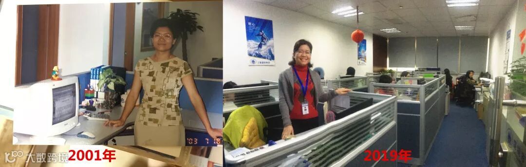 值公司成立20周年庆典到来之际,财务中心ying为公司献上了一份珍贵礼物。左图是ying在2001年刚加入公司的工作照,岗位为出纳。右图为ying于2019年在公司的近期照,现担任财务中心财务经理,部门人员规模增长9倍,也见证了公司从蓄力起步到茁壮成长的辉煌历程。感谢所有与ying一样为公司奉献自己大好年华与青春的老员工们,谢谢你们对公司的忠诚追随与辛勤付出,下一站我们携手奋进,再创辉煌。