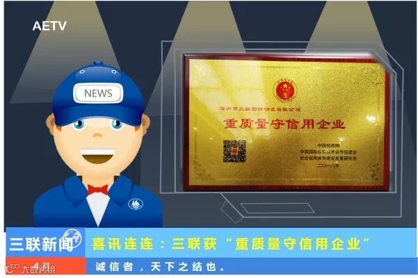2018年4月,三联荣获由中国信用网、中国国际经济技术合作促进会、社会信用体系建设发展研究会联合认证的“重质量守信用企业”称号,这既是对三联综合实力、诚信经营的高度认可,也是对三联全体员工共同努力和奋斗的充分肯定,更是对三联未来发展和影响力的最好证明。未来,三联将以更高效负责的服务水平回报客户的厚爱与信赖。