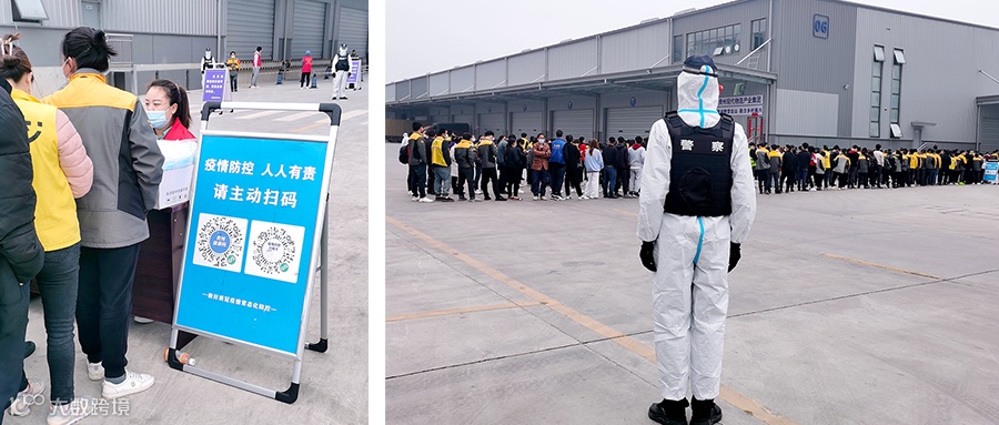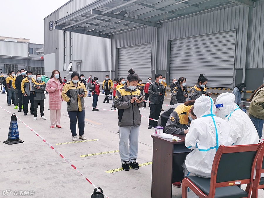 现场物业团队配合疫情防控办、公安局、管委会、谷脚镇政府、卫生院等单位,对“韵达快递”涉疫人员及包裹进行转运,配合卫生院医护人员迅速组织园区内所有工作人员有序排队,做好核酸检测准备工作。