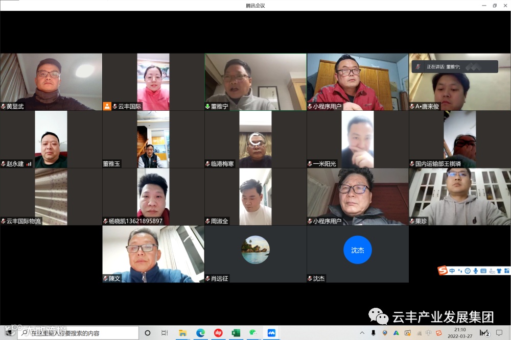 随着最新防疫防控政策的公布,云丰产业发展集团于27日晚21点即刻召开紧急视频会议,各公司/部门主要负责人参会。针对防疫政策,董总布置成立防疫防控应急小组,要求各公司/部门调配人员,保证生产,以最大化程度服务好客户,同时后勤保障部门采购物资,保证值班人员的生活必需。
