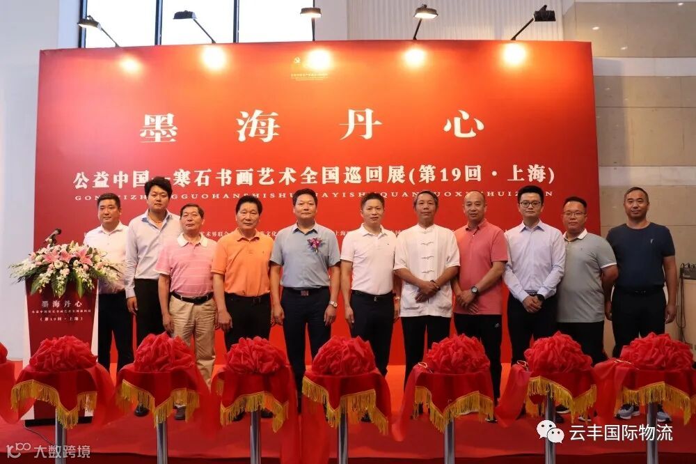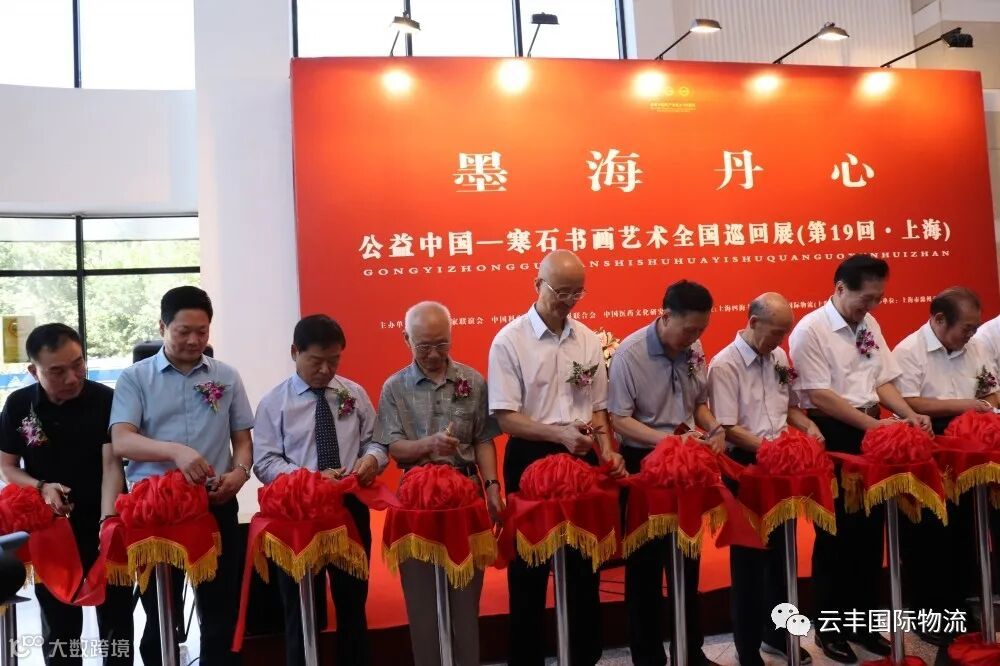 开幕式上,中共中央宣传部原常务副部长龚心瀚作了重要讲话,解放军原总政治部副主任童世平上将宣布书画展开幕。云丰国际物流(上海)有限公司总裁董彬等20名领导上台剪彩。