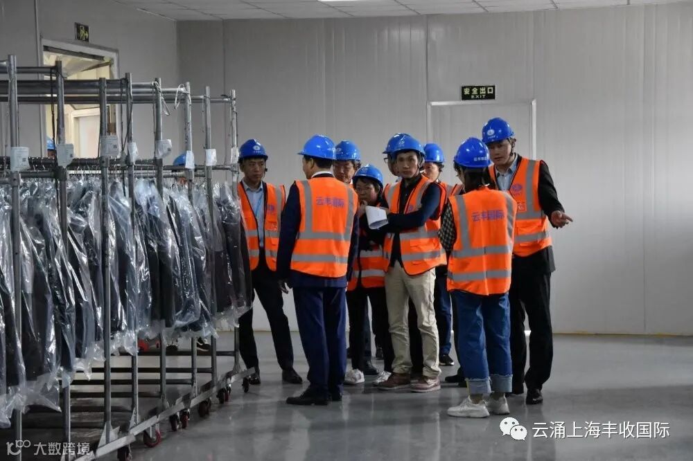 蒋会长等先行来到了云丰洋山的茂祥库,作为洋山三库中最高端的库区,我们全面展示了云丰高端仓储的风采,从进仓到入库再到装箱,从二维码扫描确定库位到全网络覆盖的库区,从为客户个性化打造的QC房间和干净无尘的挂衣房间,蒋主任等耐心地听我们逐做一一介绍,同时也对仓库的作业效率和作业模式给予高度的肯定。