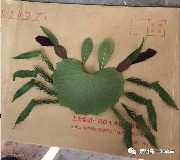 DIY 老毛蟹:沿途收集7种不同的树叶,组成崇明“老毛蟹”造型