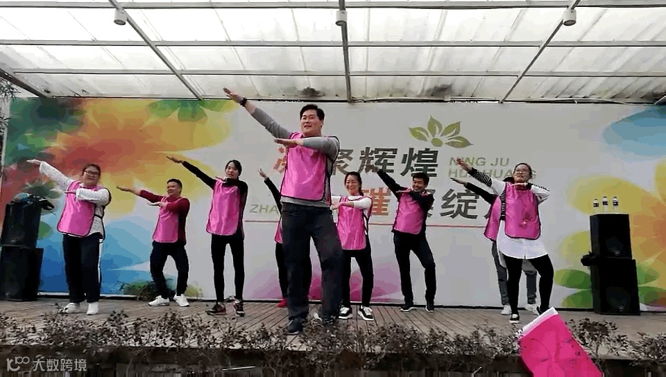 创意冲击波秀:所有小组成员摆成双脚离地的pose