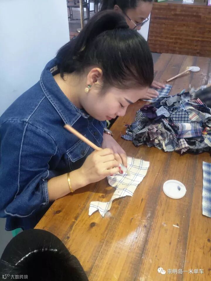 在第一天的骑游活动中,穿插民俗文化体验,学习当地传统文化——DIY瀛洲布贴画+踩高跷+扁担戏+舞龙体验,在调动团队发散性思维的同时,做一块属于自己独一无二的瀛洲布贴画,送给自己心爱的人;尝尝自己亲手制作的崇明糕…满满是浓的化不开的情。
